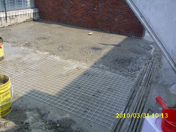 新北水泥攪伴填補地面加舖鐵絲網可強化屋頂防水結構