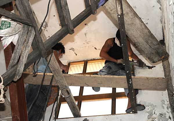 新北水泥攪伴填補地面加舖鐵絲網可強化屋頂防水結構